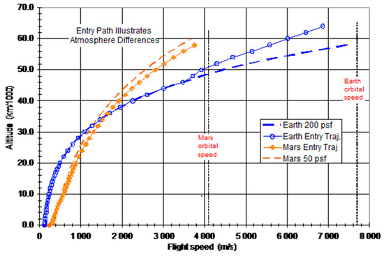 Figure 7 shows that the entry trajectories for Mars and Earth are both constant dynamic pressure trajectories differing by a factor four.
