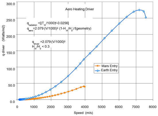 Heat loads during Mars and Earth re-entry at constant dynamic pressure.