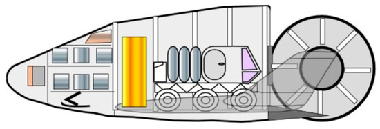 The similar vehicle proposed for the cargo entry glider is based on the published configuration of the 2004/2005 version of the Russian “Kliper” glider, as its design permits easy access to remove the vehicles and hardware required on the surface [25].