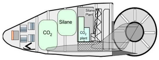 Kliper glider configured to carry the silane/CO2 manufacturing plant with launch equipment support hardware.