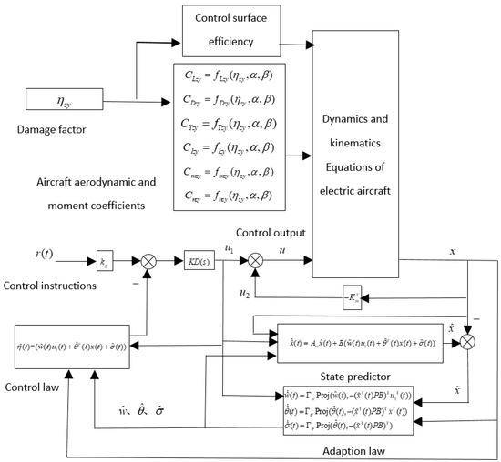 The design block diagram of the fault-tolerant control law for electric aircraft with combined airframe damage is shown in Figure 2.