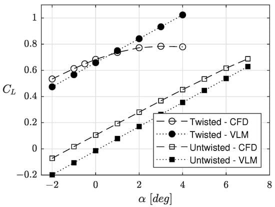 v. for twisted and untwisted configuration from VLM and CFD.