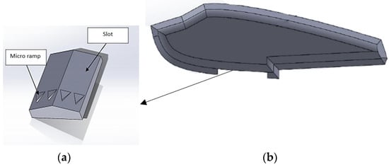 CAD drawing of (a) fuselage and (b) slot with micro-ramp.