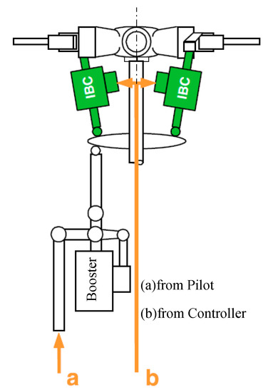 IBC is a new method developed from HHC [5]. The basic principle of IBC is shown in Figure 1. HHC uses hydraulic actuators as active control actuators to apply excitation to the non-rotating ring of the swashplate. The frequency of the excitation force is determined by the number of blades. Compared to HHC technology, the actuator of the IBC is installed above the rotation ring of the swashplate, and each blade can independently achieve multi-harmonic pitch changes and arbitrary pitch motion.