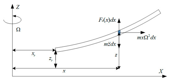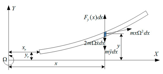 The rotor blade can be analyzed as an elastic beam [25,26]. The equations of motion of the blade system were obtained through the method proposed by Hamilton, which can be expressed as: