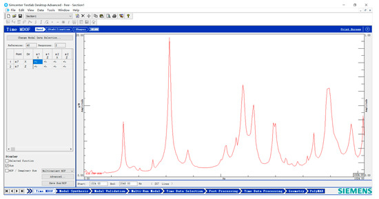 The response of the blade is calculated based on the previous aerodynamic and dynamic calculations. The modal superposition method, which obtains the response of the system by overlaying the contributions of various modes [27,28], was adopted to solve the problem. The method can be expressed as in Equation (12).