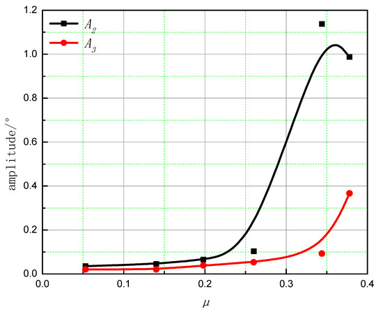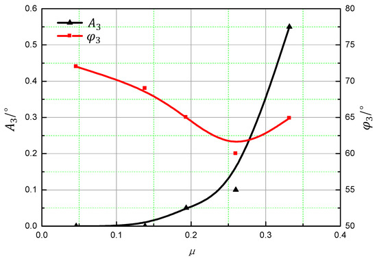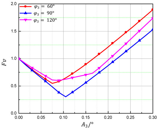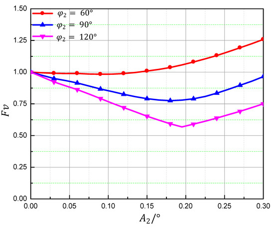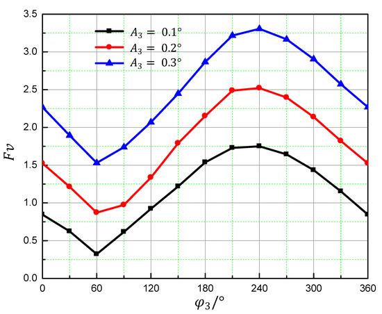 Then, the paper analyzed the impact of amplitudes of different harmonics on vibration loads. The paper calculated the variation trend of the vibration load with the amplitude of each harmonic under a specific phase of different harmonic. The results are shown in Figure 15 and Figure 16.