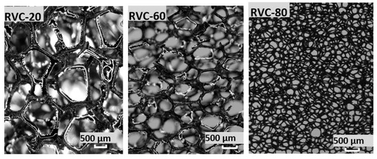 Structure of open-cell foam samples RVC-20; RVC-60; RVC-80.