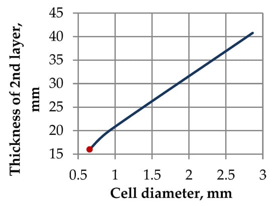 Thickness of vitreous carbon foam layer as a function of cell diameter.