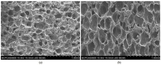 The CCF’s production process was introduced in our previous work [], and Figure 2 shows its mesoscopic structure. It can be seen that the cells are approximately circular in the in-plane direction but elliptical in the out-of-plane direction. Therefore, it is reasonable to assume that the CCF we studied was a transverse isotropic foam, and the mechanical performance parameters obtained from the later experiments also confirmed this assumption.