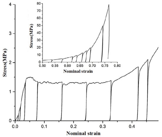 The stress-strain curves of brittle foam during uniaxial compression [].