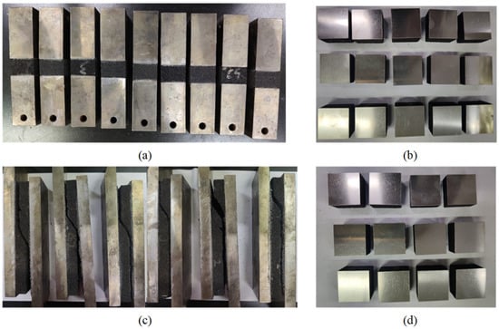 The specimens for mechanical properties of CCF: (a) UT test; (b) UC test; (c) SS test; and (d) PC test.