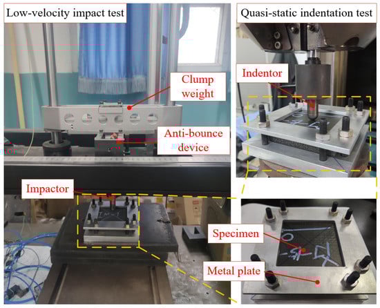 The experimental facility of low-velocity test and quasi-static indentation test.