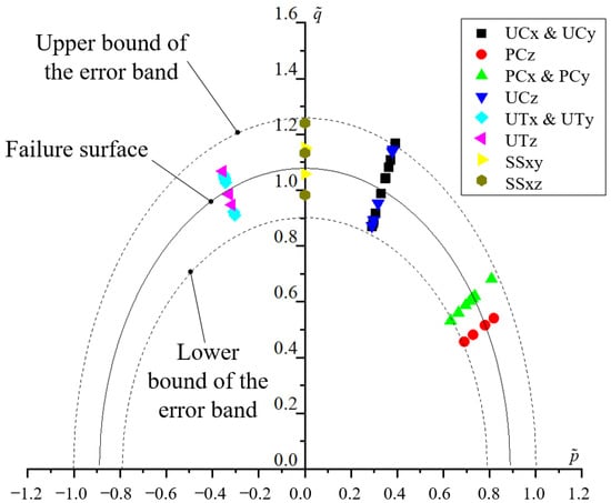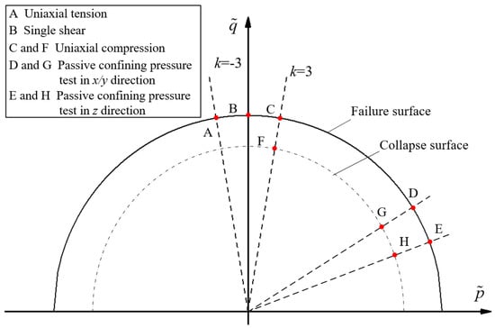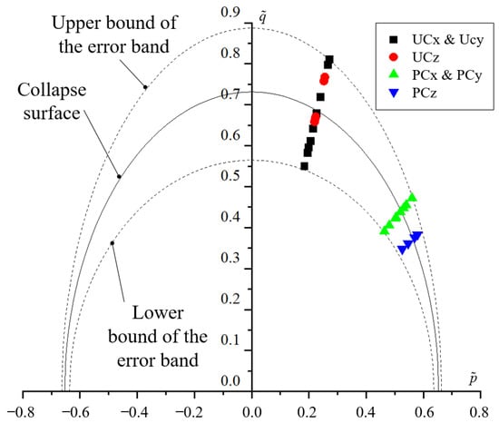 where a reflects the ellipticity of the failure surface; it can be obtained by fitting the failure points measured by PC tests, and then the value can also be obtained.