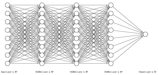 We make use of the deep learning framework, the Keras CNN dense neural network, which is adequate for regression. The network diagram is shown in Figure 8 for 8 inputs (omitting and ).