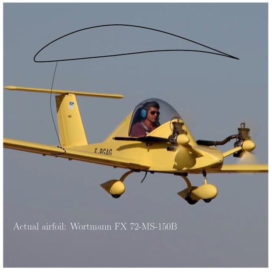 With a lightweight airplane, such as the MC12 Cri-Cri airplane shown in Figure 10, efficiency is paramount, even at the expense of lift. High values of can be observed in recreational airplanes. By complying with this requirement, we are fulfilling two requirements, one is to maximize efficiency and the other is to avoid stalling. In this type of analysis, attention is focused on the behavior of the boundary layer, known as the layer of fluid close to a surface, a layer that strongly depends on the Reynolds number, the shape of the airfoil, and its inclination. Evaluating the boundary layer has the objective of reducing resistance measured by the resistance coefficient , composed of two effects, pressure resistance and frictional resistance [].