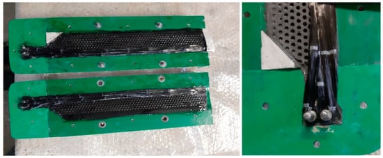 Afterwards, the honeycomb core was placed on the skin of the blade and its position was adjusted with the aid of additional components, as shown in Figure 5.