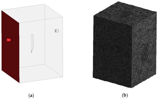 The fluid flow domain defined for the CFD analysis has the shape of a rectangular parallelepiped, with the outer walls set at a distance of 1.5 m from the centrally positioned tail rotor blade. The velocity inlet section (a) and the pressure outlet section (b) are presented in Figure 17.