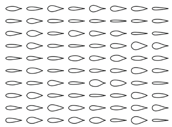 The input variables of symmetrical airfoil generator include the latent variables, , and the noise variables, . Here, we chose and as an example to study the generated samples, as shown in Figure 8.