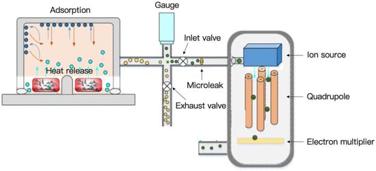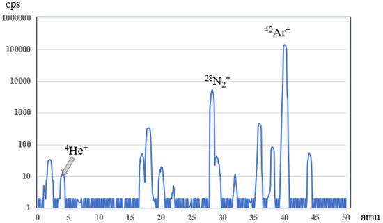 Diagram of quadrupole mass spectrometer analysis when 1 × 10−5 Pa air is purified via a getter (for about 1 × 10−5 Pa air, the partial pressure of He is about 5.61 × 10−5 Pa 10−11 Pa, and the mass spectrometer can measure its weak signal. In addition, most of the nitrogen and oxygen in the air are absorbed via a getter, and argon is the main component).