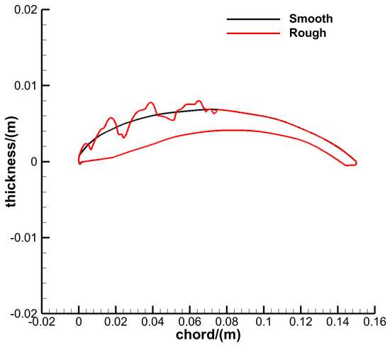 In general, when the angle of attack is below 6°, the rough airfoil exhibits lower aerodynamic efficiency compared to the smooth airfoil. This is mainly due to a more pronounced increase in drag than in lift. However, in the angle of attack range of 6°–16°, the rough airfoil demonstrates better aerodynamic efficiency than the smooth airfoil, as displayed in Table 2. This improvement can be attributed to the combined effects of increased lift and reduced drag in the rough airfoil. Once the angle of attack exceeds 16°, the flow field is characterized by separated flow, and the lift of both airfoil types becomes nearly identical. Although the drag of the rough airfoil is slightly smaller in this regime, the overall aerodynamic efficiency of the two airfoil types is almost equal.