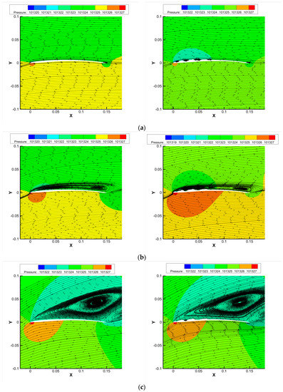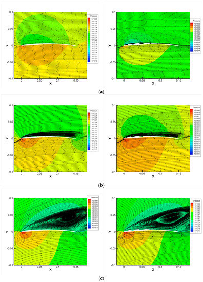 This section focuses on investigating the evolution characteristics of the flow field and the variations in the pressure and friction coefficients of the airfoil under different conditions. These aspects are crucial in understanding the overall aerodynamic characteristics, particularly the development and evolution of vortices on the upper surface of the airfoil. By analyzing the numerical simulation results, we aim to gain insights into these flow-field dynamics and the corresponding changes in the pressure and friction coefficients.