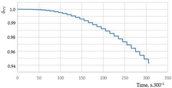 The dependence of the standardized a posteriori dispersion of the speed δVV on time is shown in Figure 12. It is obvious from the figure that the coefficient δVV decreases with increasing time, which allows a more accurate measurement of the speed of movement of FO.