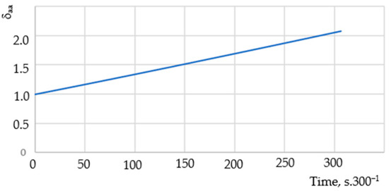 Figure 1c shows the dependence of the frequency instability of the DME signal S1(X,t) on the time of flight according to the algorithm (11). It is clear from the figure that the frequency stability of the DME signal is satisfactory. The maximum frequency deviation does not exceed 5.8 s−1. The simulation results confirmed that the models (9)–(11) well express the physical nature of the investigated processes.