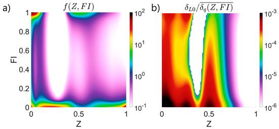 The original formulation has been re-normalized so that zero corresponds to non-premixed conditions and unity corresponds to premixed conditions. The relationship between this numerical value and the local combustion regime can be easily deduced by the physical meaning of the mathematical expression. If the gradients of the fuel and the oxidizer are aligned, then the local mixing conditions can be deemed premixed. Contrarily, the opposed gradients of the reactants correspond to a counterflow non-premixed configuration. There are several available definitions of a flame index that have been proposed in recent works [43,44,45,46,47,48]. These markers have been extensively reviewed in a recent study [49], where it was found that most definitions yield similar classifications overall. In the frame of the present work, the definition of Yamashita et al. was the one considered, due to its simplicity and extended usage.
