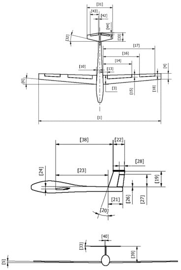 Apart from aerodynamic-related geometries, the other geometric parameters were practically identical to the design of Diana 2. The calculation of the stall speed was performed using software based on Equation (1).