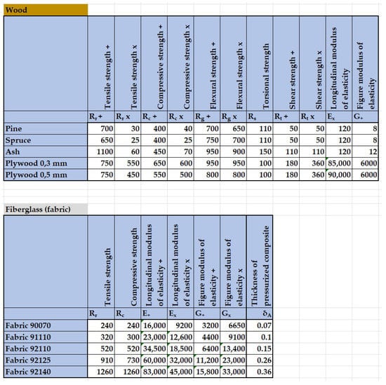 The described knowledge base, which is the foundation for the software, mainly covers the methodology for calculating and designing aviation structures (mainly gliders), but it also contains additional information on engineering materials used in aviation along with their most important characteristics, including wood and its most important types and selected metals and their alloys and composites. The content of the material database enables its scope to be extended along with the further development of the entire software. All information and values for material properties were obtained from the literature [4], which facilitated the creation of the entire knowledge base for the needs of the described software.