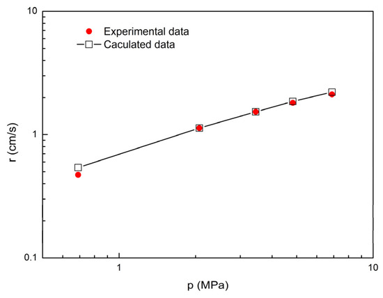 Numerical simulation is performed and compared with the experimental data to verify the ability and accuracy of the present model in capturing the process of AP/HTPB combustion. The experimental burning rate of propellant SD III-17 presented by Miller [26] is employed to compare with the result obtained by the present model. The 20 μm AP is treated as the fine AP in the model. As shown in Figure 2, the burning rates r are in good agreement with the experiment, with an average error of 5% for all points. In conclusion, the applied numerical simulation yields satisfying results so that the combustion model can be used in the current study.