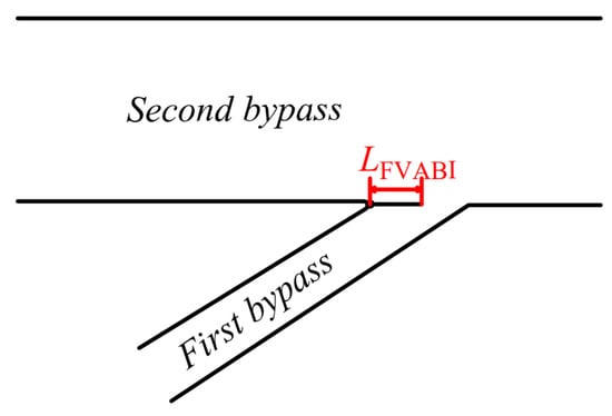 The existing literature indicates that two primary methods exist for controlling the FVABI, which are axial and pitch adjustment. Both methods function by altering the geometric shape of the duct in order to regulate the internal flow state of the bypass. In this study, an axial adjustment method is employed for the FVABI, whereby the structure and associated parameters are defined as presented in Figure 3. Specifically, via manipulation of the axial extension length (), the FVABI is able to modulate the flow area of the first outer bypass, consequently adjusting the matching relationship between the first and second outer bypasses. In this study, the exit area of the second outer bypass remains constant while the FVABI is adjusted. In the present study, it was observed that the exit area of the second outer bypass remained constant during the FVABI adjustment process. The dimensionless opening of the FVABI is defined based on the length () at which the adjusting plate completely covers the first outer bypass: