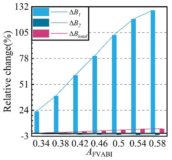 Figure 19 illustrates the variation of the compression system bypass ratio with respect to the FVABI opening. As the opening increases, the flow area of the first outer bypass outlet expands, thereby enhancing the flow capacity. Consequently, the compression system B1 exhibits a sharp increase, with a growth rate that initially rises before declining. When AFVABI = 0.58, the increase in the compression system’s first outer bypass ratio reaches 128.31%. Simultaneously, the compression system B2 gradually decreases during the FVABI opening process, and its variation range is relatively small. Btotal is influenced by both the first and second outer bypasses, gradually increasing with the increase in FVABI opening. However, due to the significant difference in flow rates between the first and second outer passages, the total passage ratio increases much less than the first outer passage ratio. When AFVABI = 0.58, the increase in Btotal reaches 4.90%.
