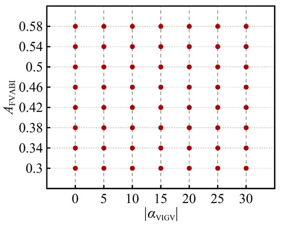 In order to further summarize the coupling mechanism of CDFS VIGV regulation and FVABI regulation on the compression system, a joint control scheme of the two adjustable components is presented in Figure 27. The adjustment range of the CDFS VIGV opening is from 0° to −30°, and the adjustment range of the FVABI opening is from 0.30 to 0.58.
