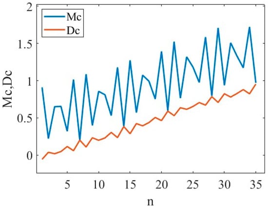 where Mc(n) and Dc(n) have the same asymptotic linear growth rate, but Dc(n) converges better. When the phase diagram of p(n) with q(n) shows irregular motion, i.e., Brownian motion characteristics, Mc(n) increases linearly with time. Calculate asymptotic growth rate Kc: