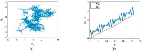 If the phase diagram of p(n) with q(n) shows irregular motion characteristics, then there is chaos in the original time series; otherwise, there is none. To study the dispersion characteristics of p(n) with q(n), define mean square displacement Mc(n):