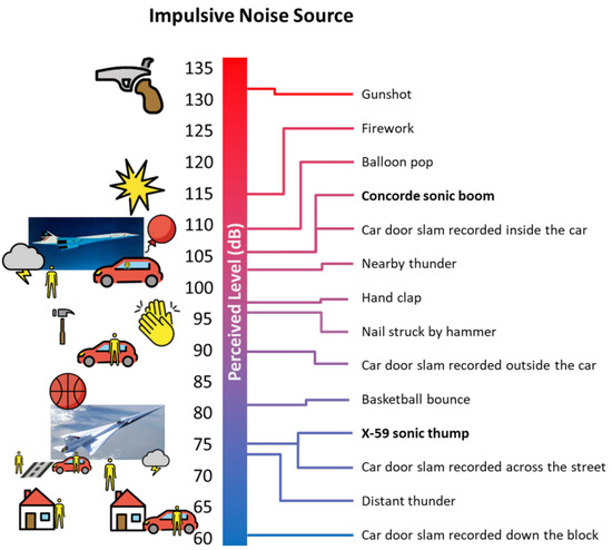 28. Doebler, W.J.; Rathsam, J. How loud is X-59’s shaped sonic boom? In Proceedings of the 177th Meeting of the Acoustical Society of America, Louisville, KY, USA, 13–17 May 2019. [Google Scholar]
