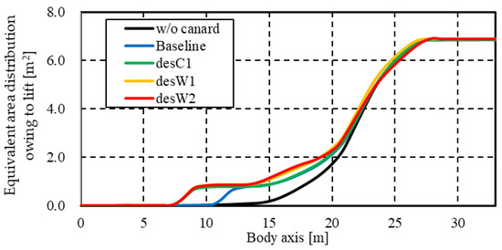 Figure 11. Equivalent area distribution owing to lift of each configuration.