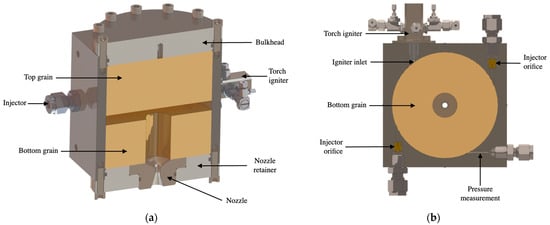 - Jens, E.T.; Karp, A.C.; Wiliams, K.; Nakazono, B.; Rabinovitch, J.; Dyrda, D.; Mechentel, F. Low pressure ignition testing of a hybrid smallsat motor. In Proceedings of the AIAA Propulsion and Energy 2019 Forum, Indianapolis, IN, USA, 19–22 August 2019. [Google Scholar] [CrossRef]