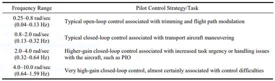 Proposed frequency ranges for control tasks [,], PIO: pilot-induced oscillation (PIO).