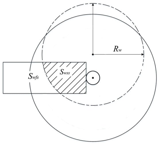 3. The wing aerodynamic forces and moments due to rotor wake effects are calculated separately from the forces and moments generated by the freestream flow. The effect of rotor wake on the wing is a function of contracted wake radius, tilting angle, angle of attack, angle of sideslip, and dynamic pressure of the portion of the wing immersed in the wake (see details in the GTRS model in []), as shown in Figure 6, where Swfs represents the wing area in the free stream, Swss represents the wing area in the rotor slipstream, and Rw represents the contracted wake radius.
