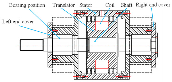 The TES has an axisymmetric structure and is mainly composed of a motor, a stator, and a coil. A schematic of its structure is shown in Figure 1. The actuator and stator of the TES are both equipped with a circular toothed structure of the same size, and there is an air gap between each pair of toothed structures. The coil is usually wound around the rotor. When current flows through the coil, the rotor generates an electromagnetic field; the lines of this field go along the rotor magnetic teeth, through the air gap, into the stator toothed structure, and then back into the rotor through the air gap, forming a closed circuit.