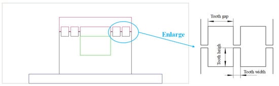 The finite element simulation model established above can accurately describe the force–displacement curves of the TES. The tooth height, tooth width, and tooth number of the electromagnetic spring affect the static electromagnetic force of the TES, but experiments cannot be easily conducted to study this influence. Therefore, the finite element model is used to study the influence of the parameters of the magnetic teeth on the characteristics of the generated electromagnetic force.