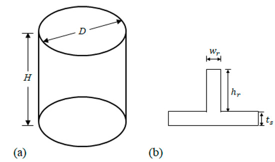 Sketch of the thin-walled stiffened cylinder: (a) geometric parameters of the thin-walled stiffened structure (b) geometric parameters of the rib.