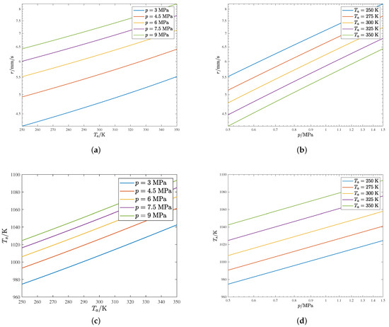 As discussed in Section 2, the phenomenological reconstruction of the QSHOD-KTSS model is based on the steady combustion results under different ambient pressures and temperatures. This can be complete by a temporal forwarding of the unsteady Equation (8) by a similar expansion,