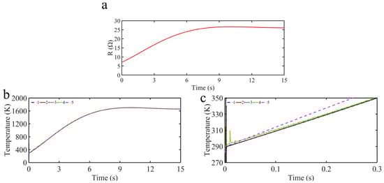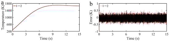 Considering the disturbances of test equipment in the real situation, the resistance of the quartz lamp heater will change with the increase in temperature, the increment of resistance is added to the Simulink simulation as internal disturbances. Figure 9a indicates the curve of internal disturbances versus temperature; the expression is as follows: