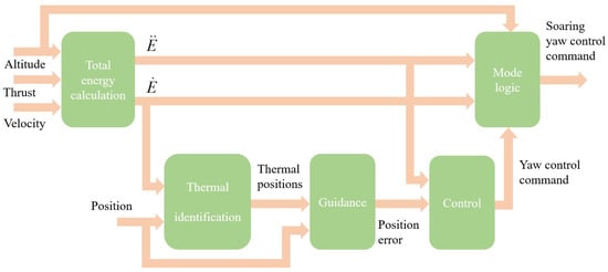 Then, the thermal center can be estimated in different manners such as the weighted average, the Gaussian regression and the Kalman filter. Referring to Allen, this work utilizes the weighted average to estimate the thermal location. The estimation function corresponds to the “Thermal identification” block in Figure 4 and calculates the output for guidance and control.
