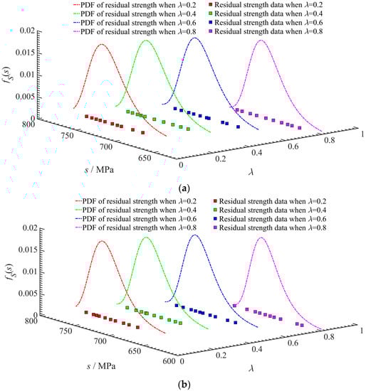 Moreover, the correlation between the PDF of residual strength and the PDF of initial strength is obtained by the derivation of Equation (6).