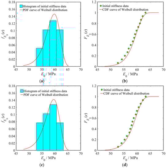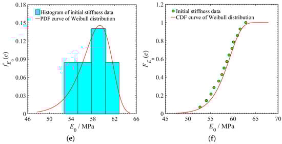 Accordingly, the PDF and CDF curves of initial stiffness are plotted based on the above parameters, as shown in Figure 7.